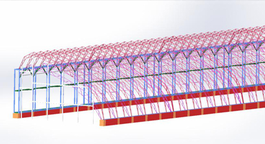 該溫室骨架為熱鍍鋅鋼材焊接,后墻為熱鍍鋅鋼材組裝,采用彩鋼板后墻保溫和相變蓄熱系統(tǒng)代替土墻和磚墻等蓄熱體,解決裝配式日光溫室的蓄放熱問題,實現(xiàn)日光溫室部件的工廠化生產(chǎn)和安裝的標(biāo)準化裝配。