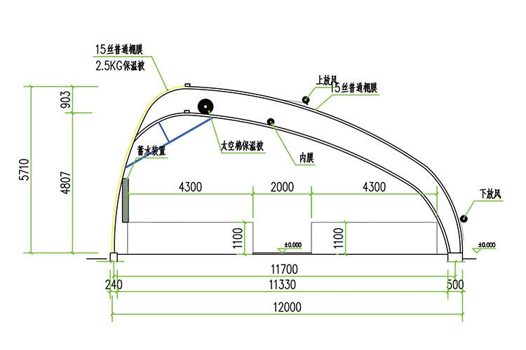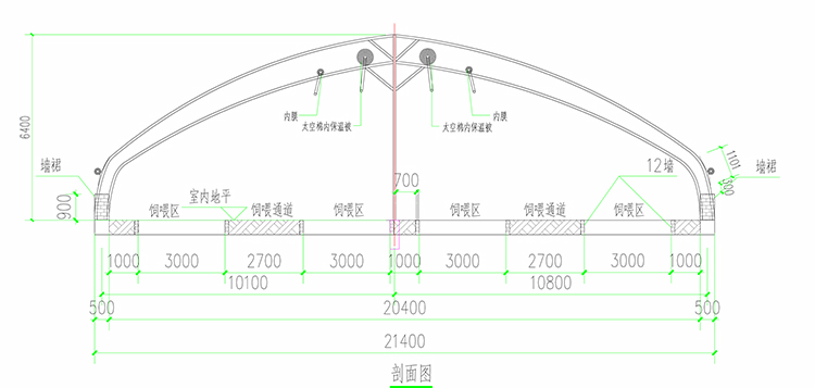 新型陽(yáng)光養(yǎng)殖棚舍系列產(chǎn)品剖面圖