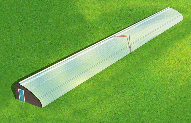 水蓄熱內(nèi)(雙)保溫裝配式拱形溫室配套設(shè)備包括:溫室主體、拱形骨架系統(tǒng)、外膜系統(tǒng)、內(nèi)膜系統(tǒng)、放風(fēng)系統(tǒng)、內(nèi)保溫系統(tǒng)、外保溫系統(tǒng)、新型水蓄熱系統(tǒng)、安裝系統(tǒng)、供電系統(tǒng)。
