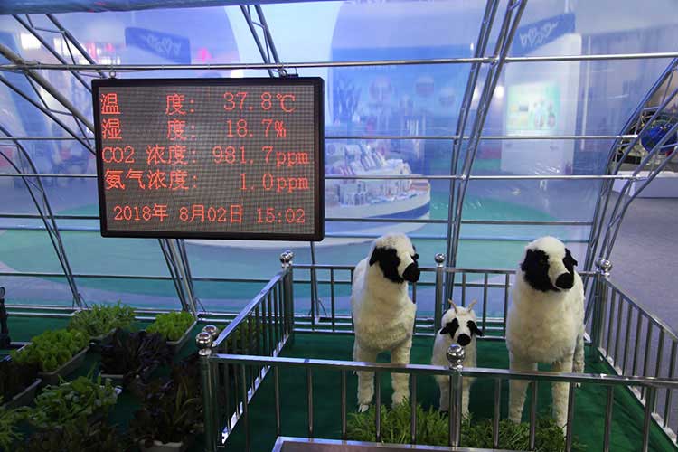 參展商喬曉雪介紹,智能棚舍可以科學(xué)設(shè)定適合牛羊生長的光照、溫度和濕度,棚舍內(nèi)安裝的監(jiān)測器24小時實(shí)時監(jiān)控。當(dāng)發(fā)現(xiàn)舍內(nèi)環(huán)境不適宜時,將自動開啟通風(fēng)換氣系統(tǒng),實(shí)現(xiàn)了牛羊養(yǎng)殖的機(jī)械化、自動化和智能化,解決了冬季保溫、母畜接羔成活率、掉膘、飲用溫水等問題,實(shí)現(xiàn)了節(jié)約人力和有效生產(chǎn)。